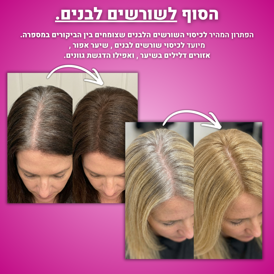 • 🎨 מבחר גוונים: התאמה קלה לצבע השיער שלך ולרמת הכיסוי הרצויה.